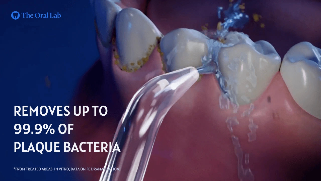 With every jet of water, stubborn plaque and hidden bacteria are washed away, leaving your mouth fresh, healthy, and truly spotless.